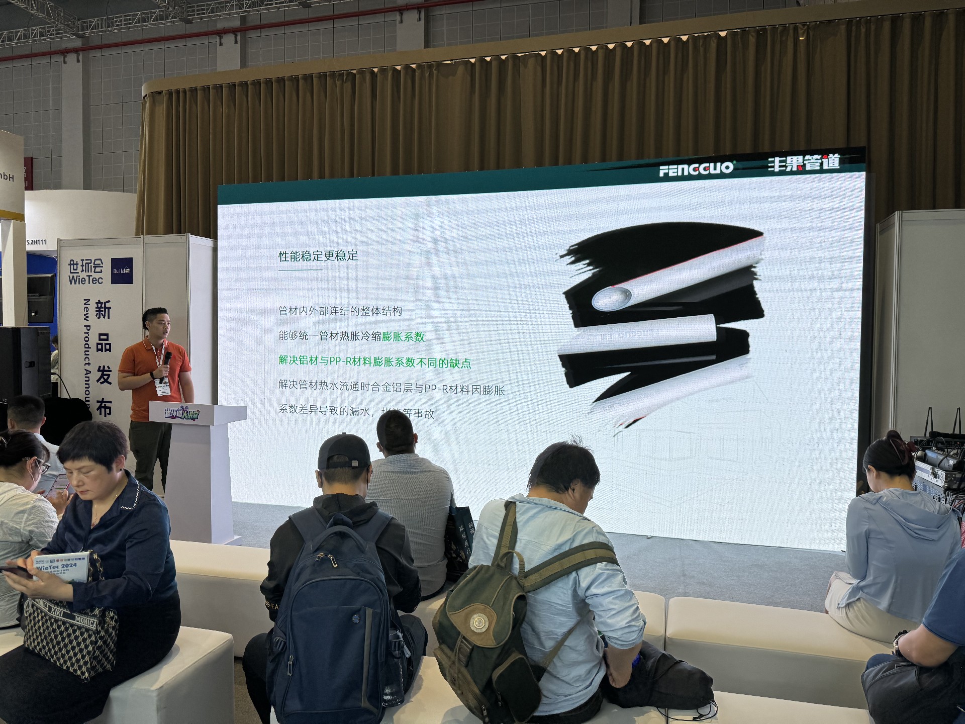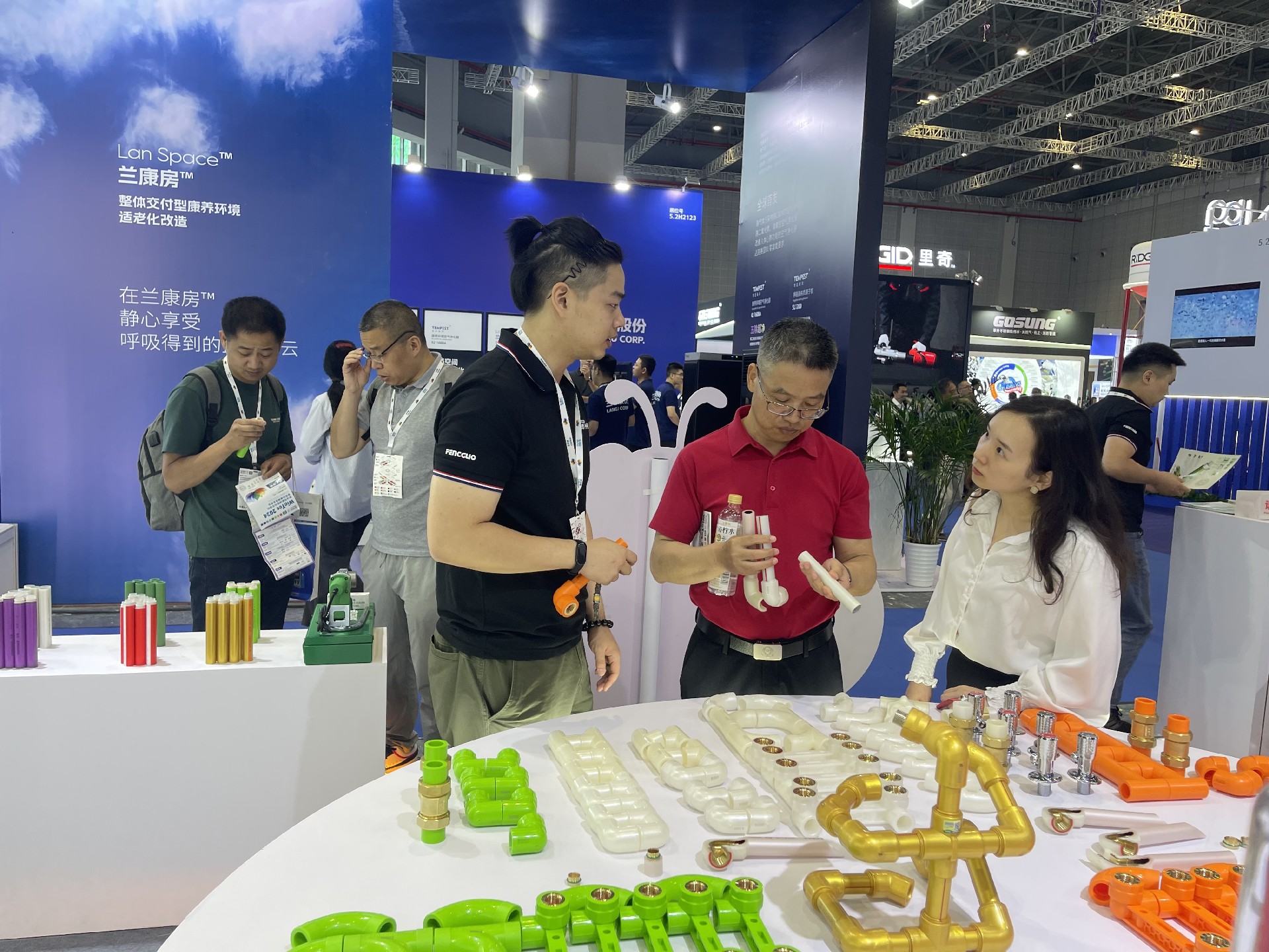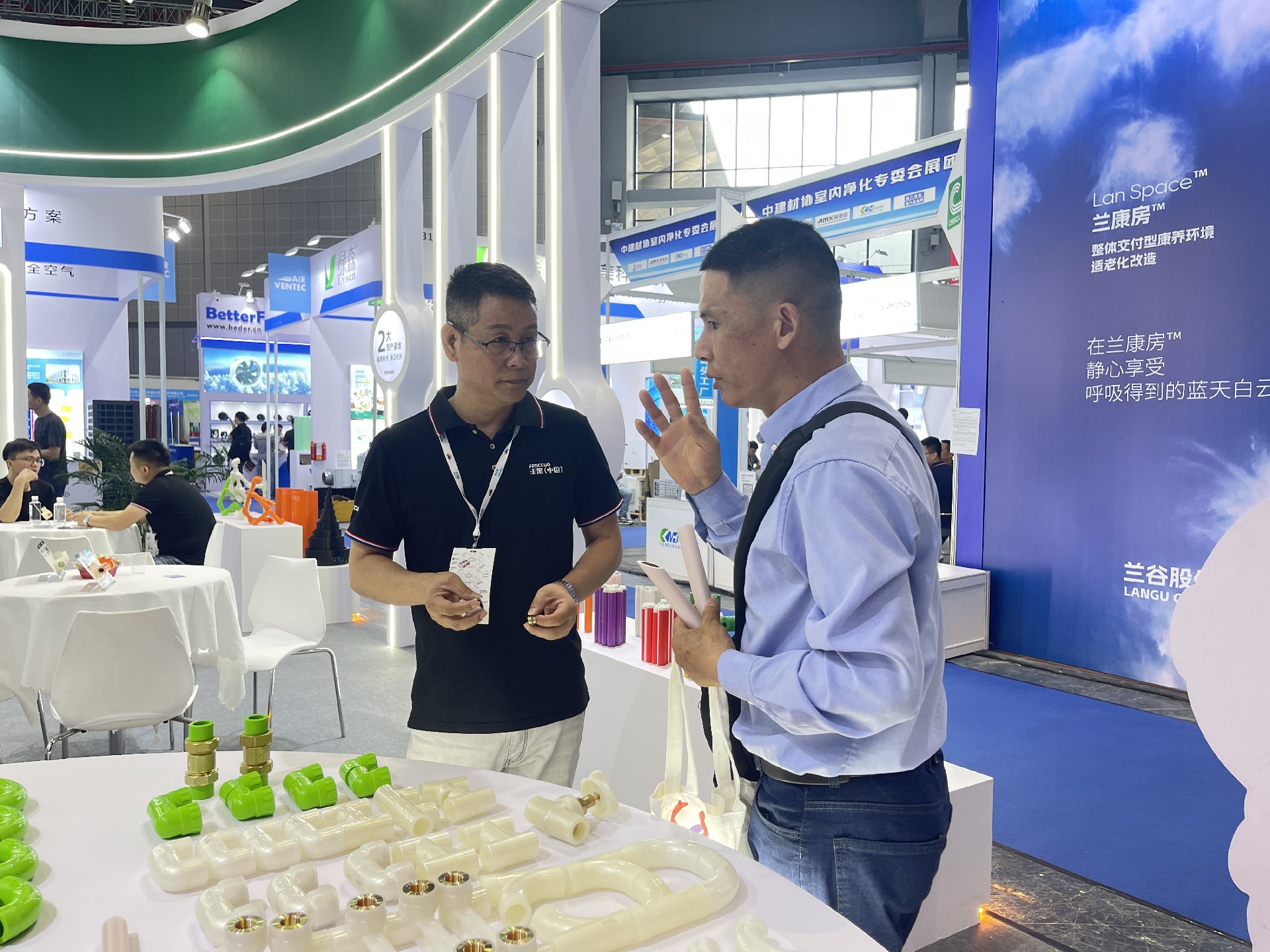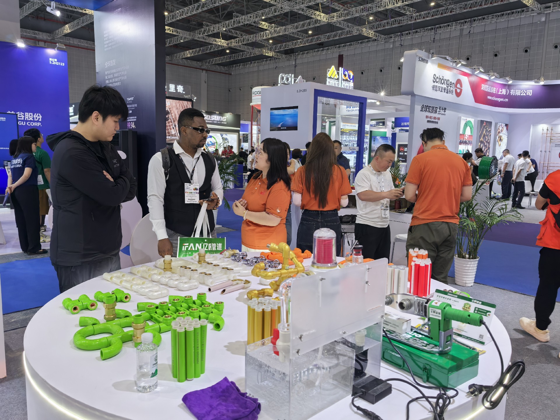 此外 ,918博天堂還展示了918博天堂在管道系統解決方案方面的專業能力。公司的售后部經理吳明波與客商們進行了深入的交流和溝通 ,分享了在管道設計 、安裝和維護等方面的經驗和見解 。通過展示實際案例和解決方案向參觀者展示了918博天堂在管道領域的綜合實力和專業水平 。