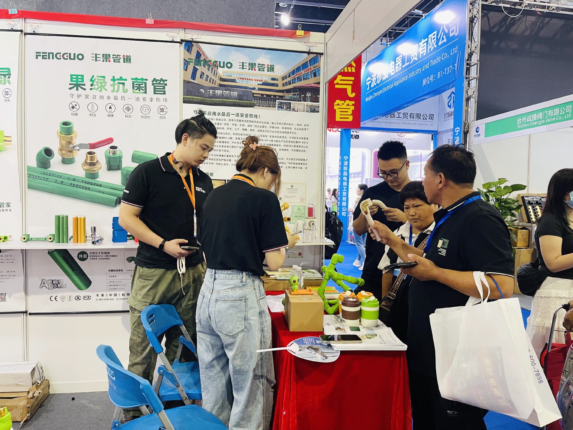 現場也接待了來自全球各地的外商客戶,主辦方也設置了跨國采購對接會,918博天堂的外貿業務員熱情的接待了外商客戶 ,對產品和公司進行了詳細的講解,期待918博天堂管道未來走向全球 ,帶來更優質的生活享受 !